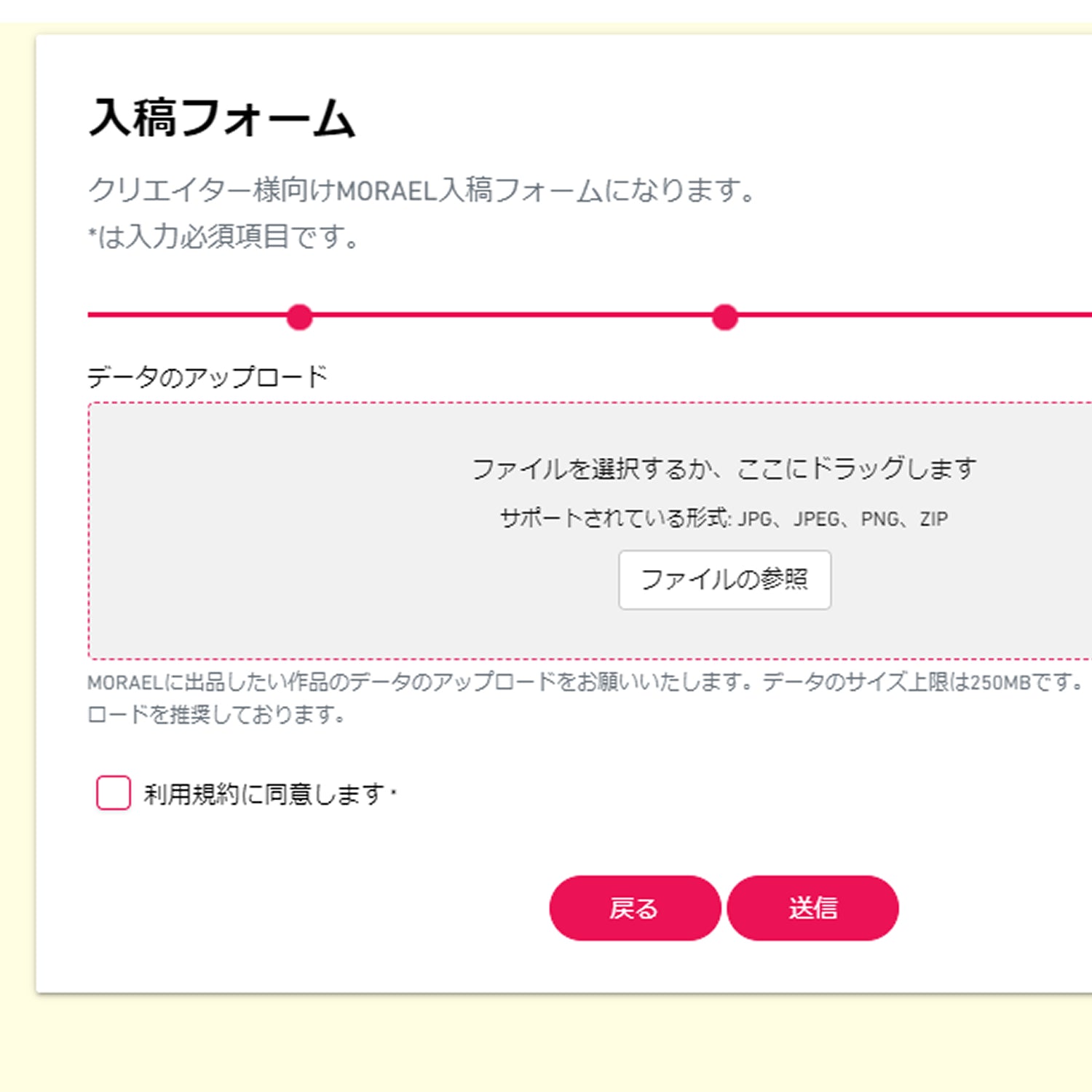 ※1度に複数のデータのアップロードは出来ません。1つの出品申請につき、1つの作品データでお願いいたします。